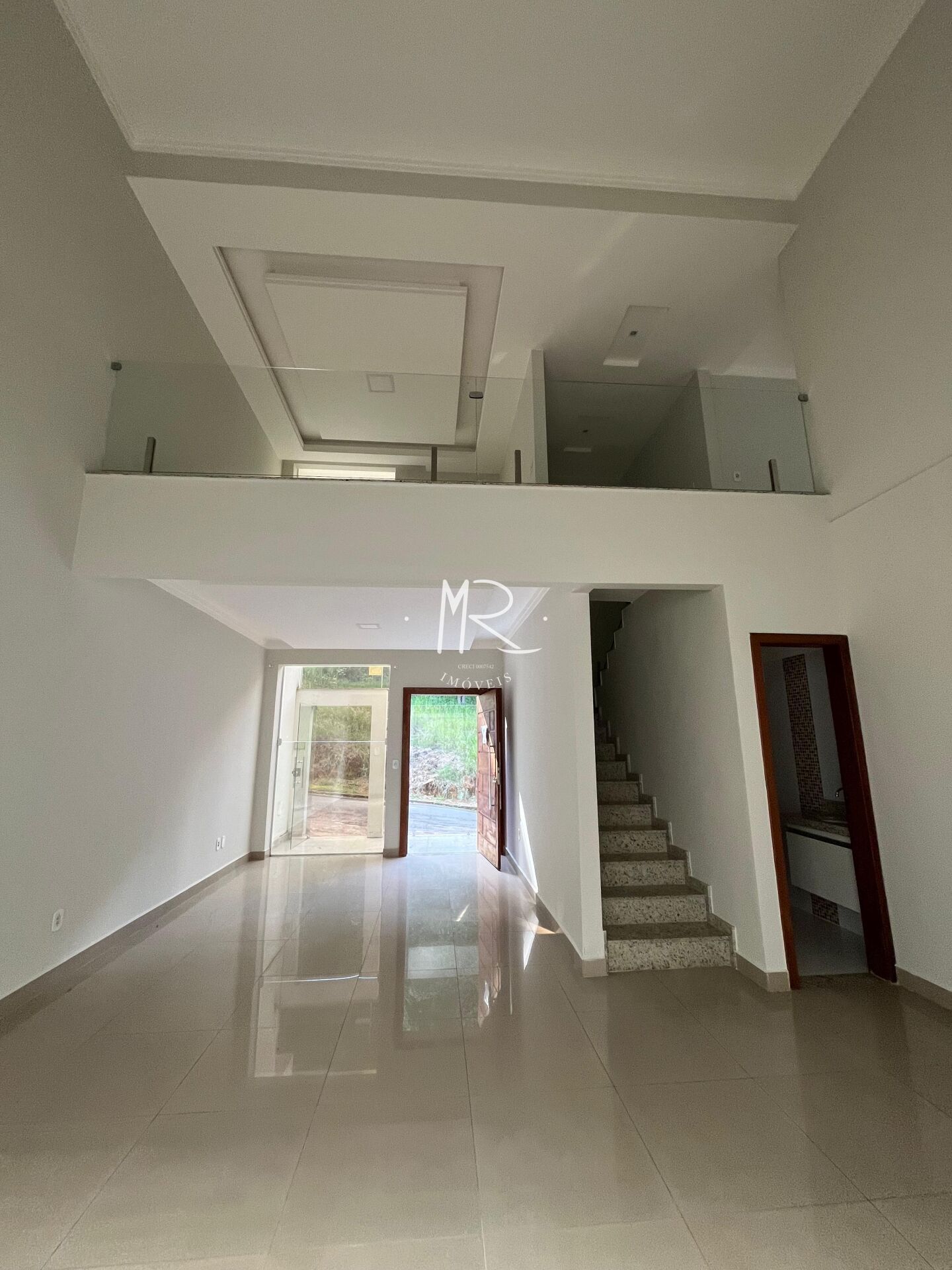 A casa tem o diferencial de ter o pé direito duplo, uma proposta que torna o ambiente mais amplo e um aspecto mais luxuoso.